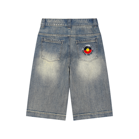 Aboriginal, Vintage Wash Baggy Denim Shorts. Always Was, Always Will Be.