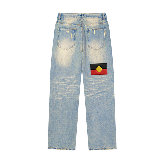 Aboriginal, Sun Fade Raw Hem Denim Jeans - Wear It, With Pride.